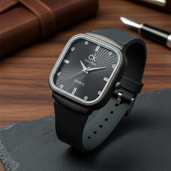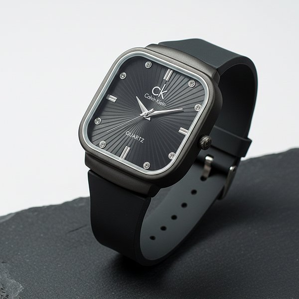 Calvin Klein Black Quartz Analog Watch for Men | Square Dial Luxury Wristwatch with Premium Silicone Strap | Modern Minimalist Design - Ameer Alam Online Shopping