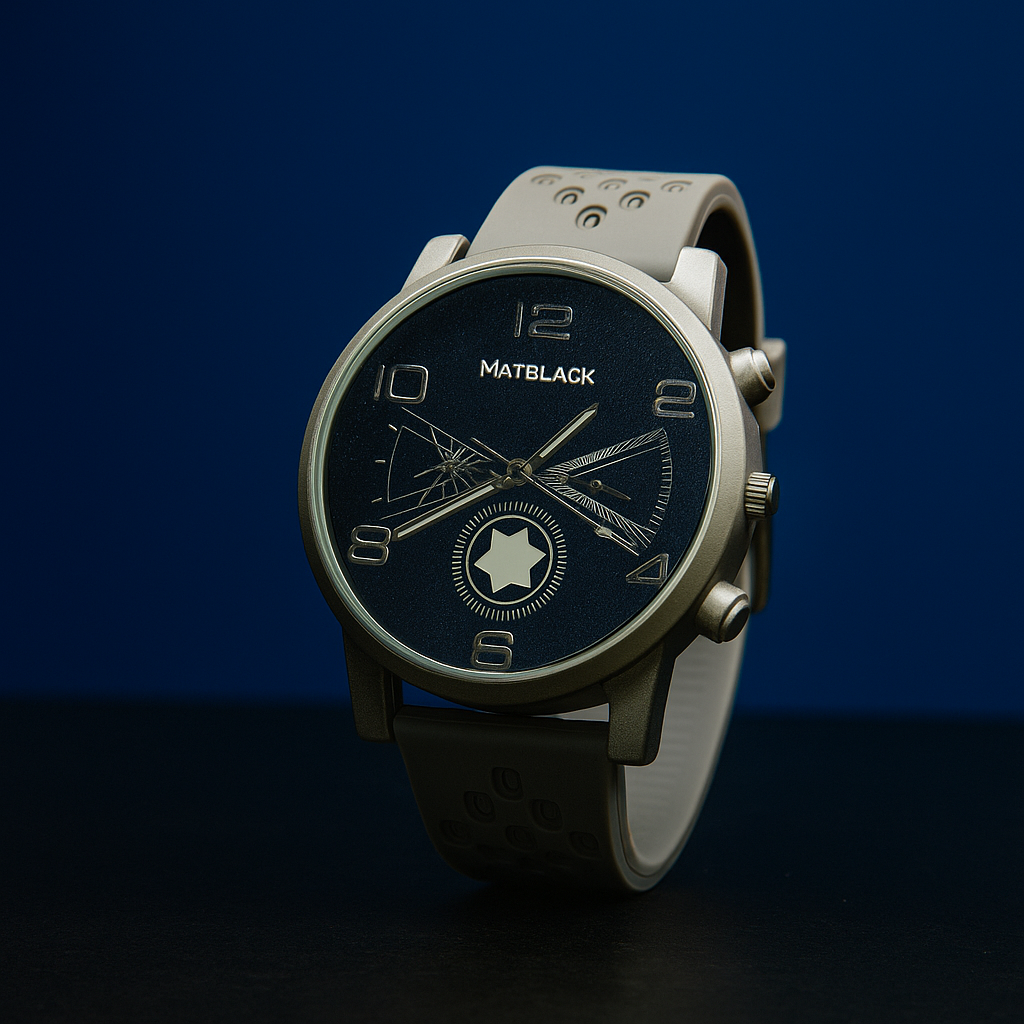 The MATBLACK Premium Men’s Analog Watch is designed for those who love a bold, sporty, and confident look. Featuring a deep navy dial, modern geometric detailing, and a durable silicone strap, this watch perfectly blends comfort with rugged style.
