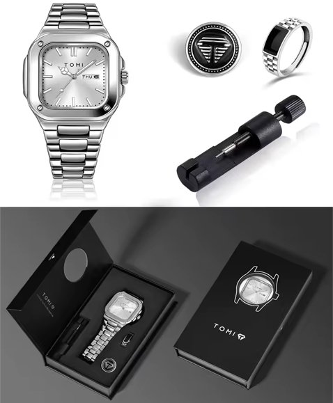 The TOMI T-306 Chain Watch blends timeless sophistication with modern practicality. Designed with a bold square dial and a premium stainless-steel chain, this watch is perfect for the modern professional who values both style and function. Whether you’re at the office, attending a business meeting, or dressing up for an evening event, the T-306 elevates your entire look.