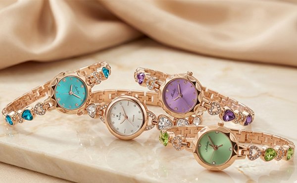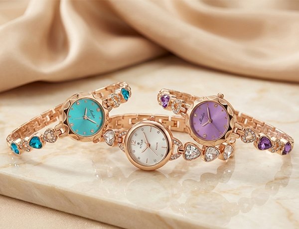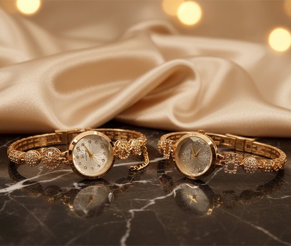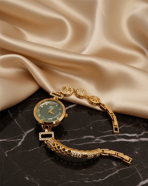 Two Key Styles: Includes the stunning Green Dial Latticework Bangle, featuring a unique crystal-encrusted cuff and faceted bezel, and the Crystal Cluster Bangle with delicate, sparkling ball and flower links.