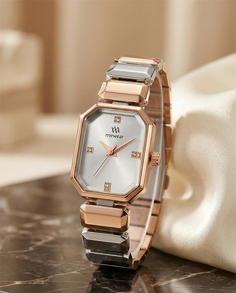 Description: Discover timeless elegance with this exquisite women’s timepiece by Mewear. Designed for the modern sophisticate, this watch features a unique octagonal case framed in polished rose gold. The minimalist sunburst dial is accented with sparkling crystal hour markers, offering a subtle touch of glamour.